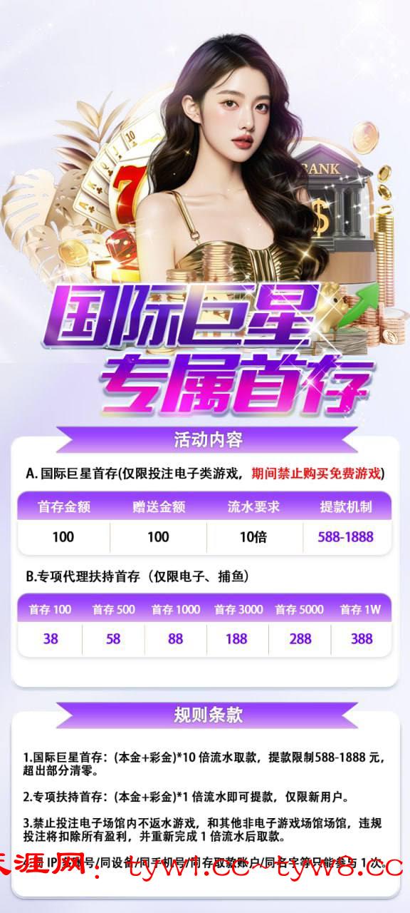 【巨星娱乐】⚜️100+100⚜️新人大水