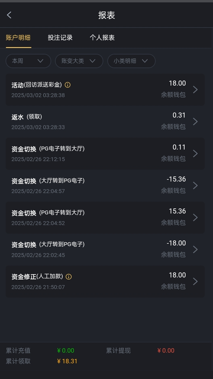 我是2月25号注册的账号 26号晚上9点多接到九鼎特邀香港电话送18  刚才上号看下发现又回馈了18 具体这台子黑不黑 不清楚 如有出款的伙伴们上图反馈一下🤗