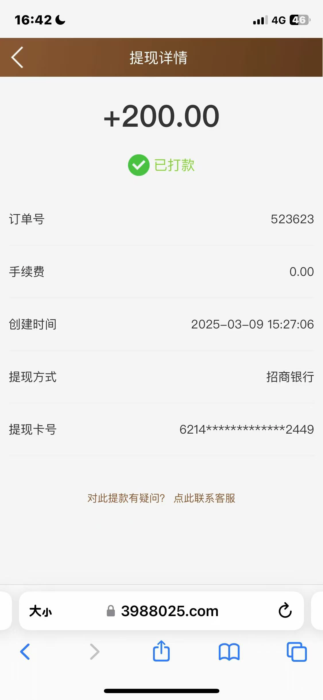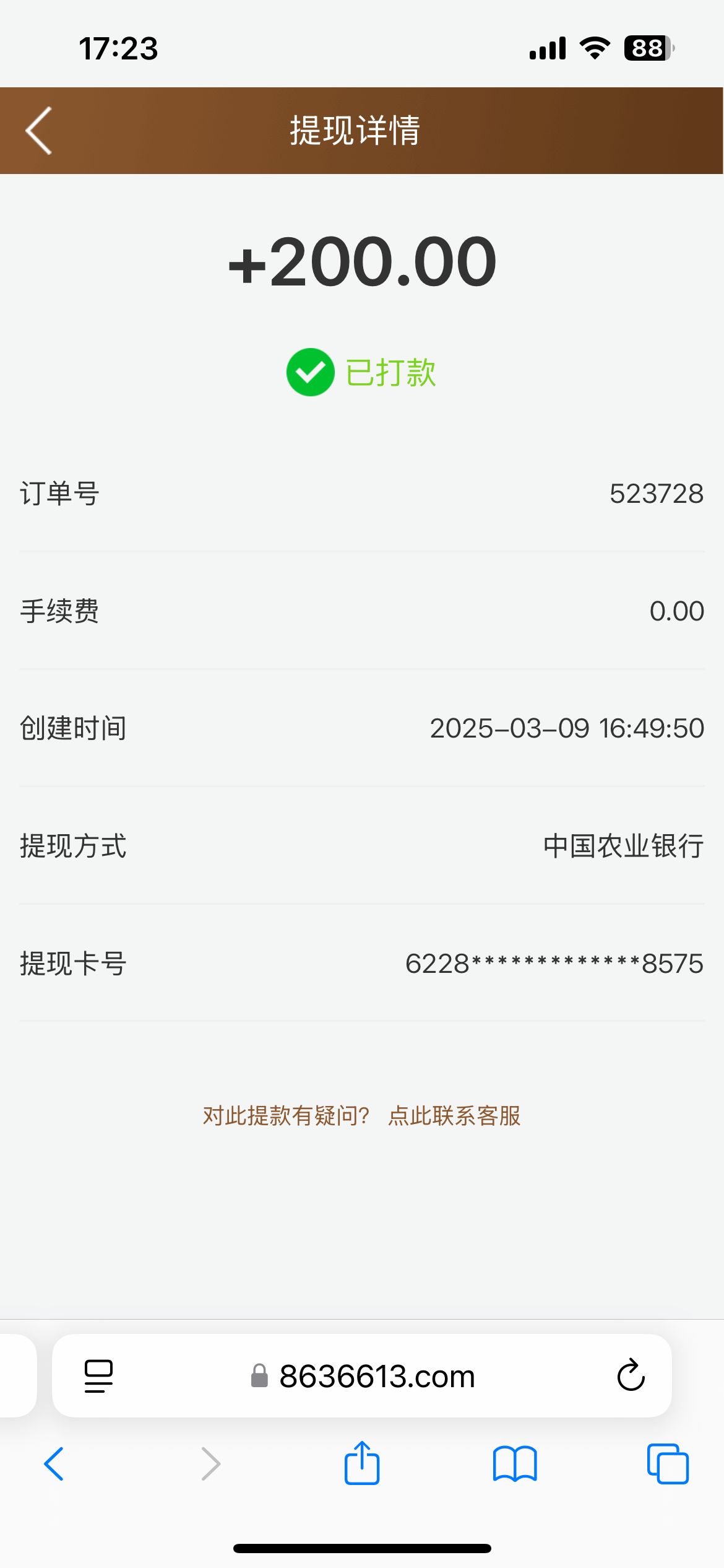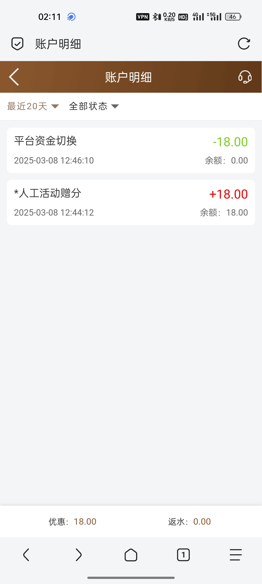 领取的彩金到账截图下