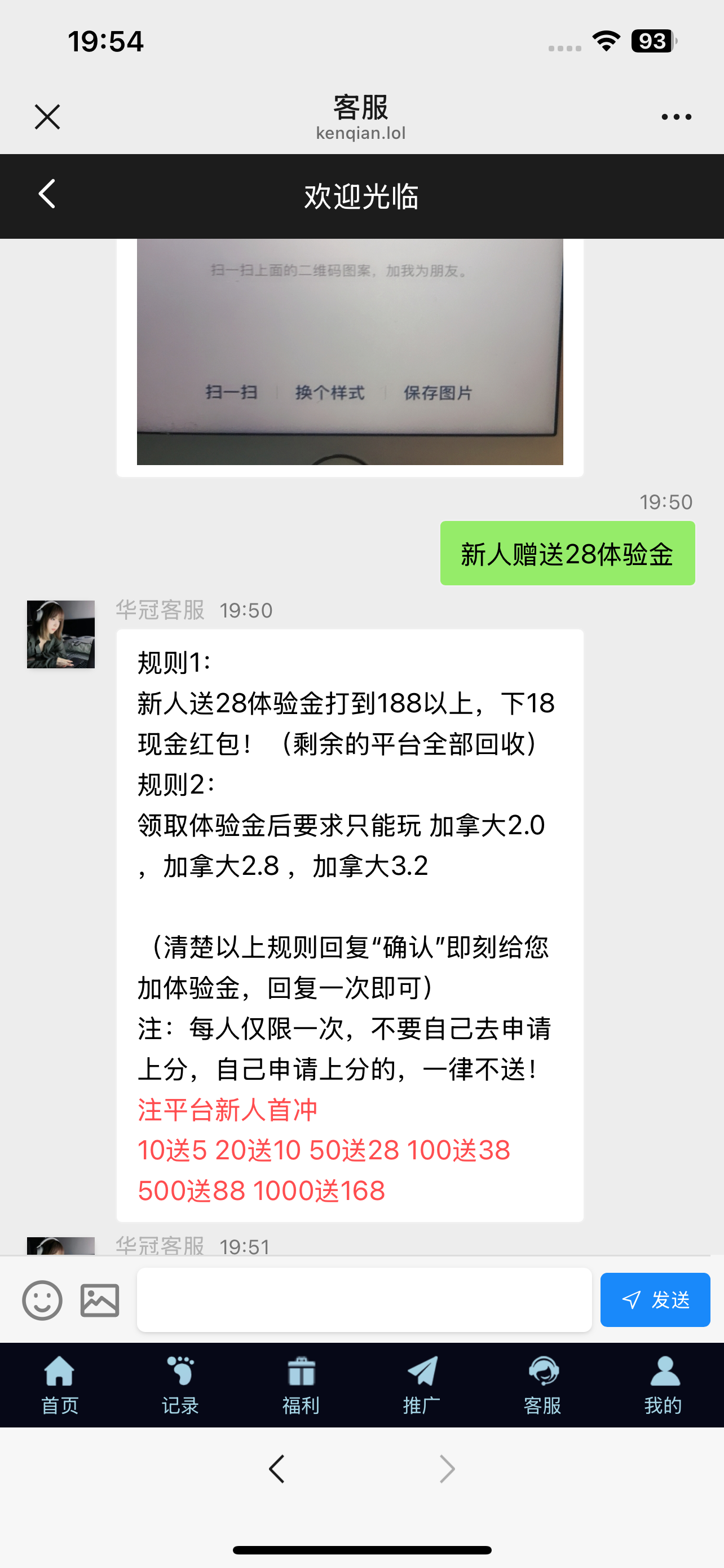 微信扫码登录联系在线客服申请送28,说结束了等人少的时候再去