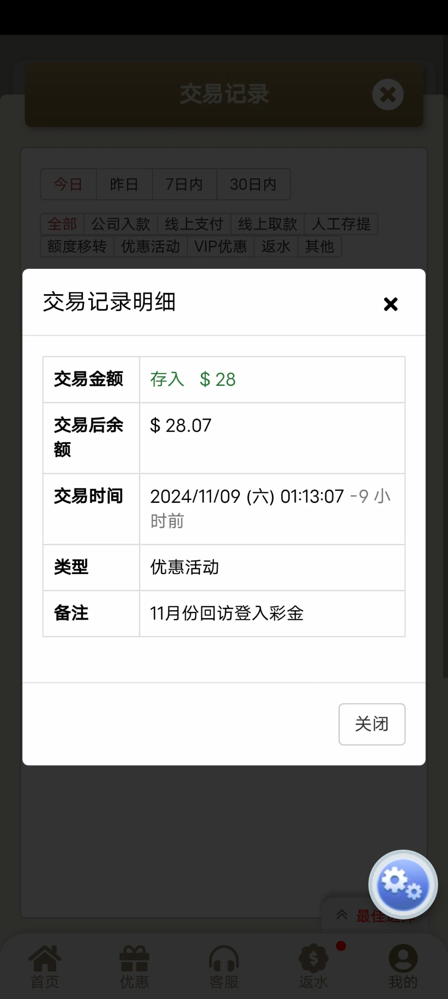 【银河3016】回馈彩金