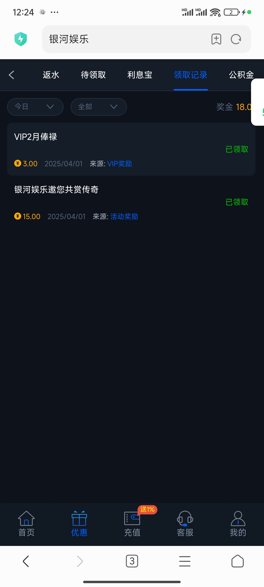 有号的老哥可以上去领一下,这个vip活动彩金