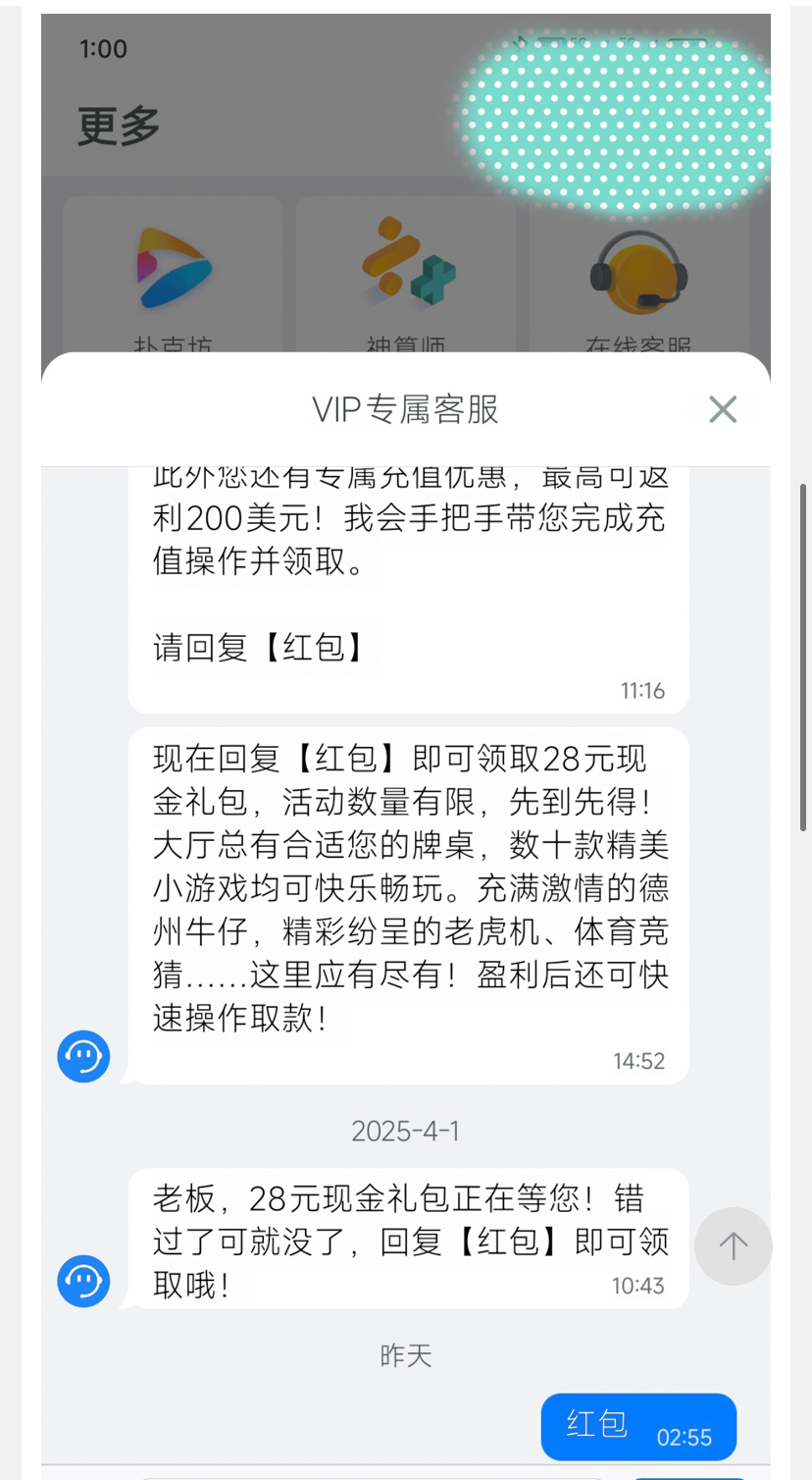 专属客服会发 送28的信息然后回复红包
