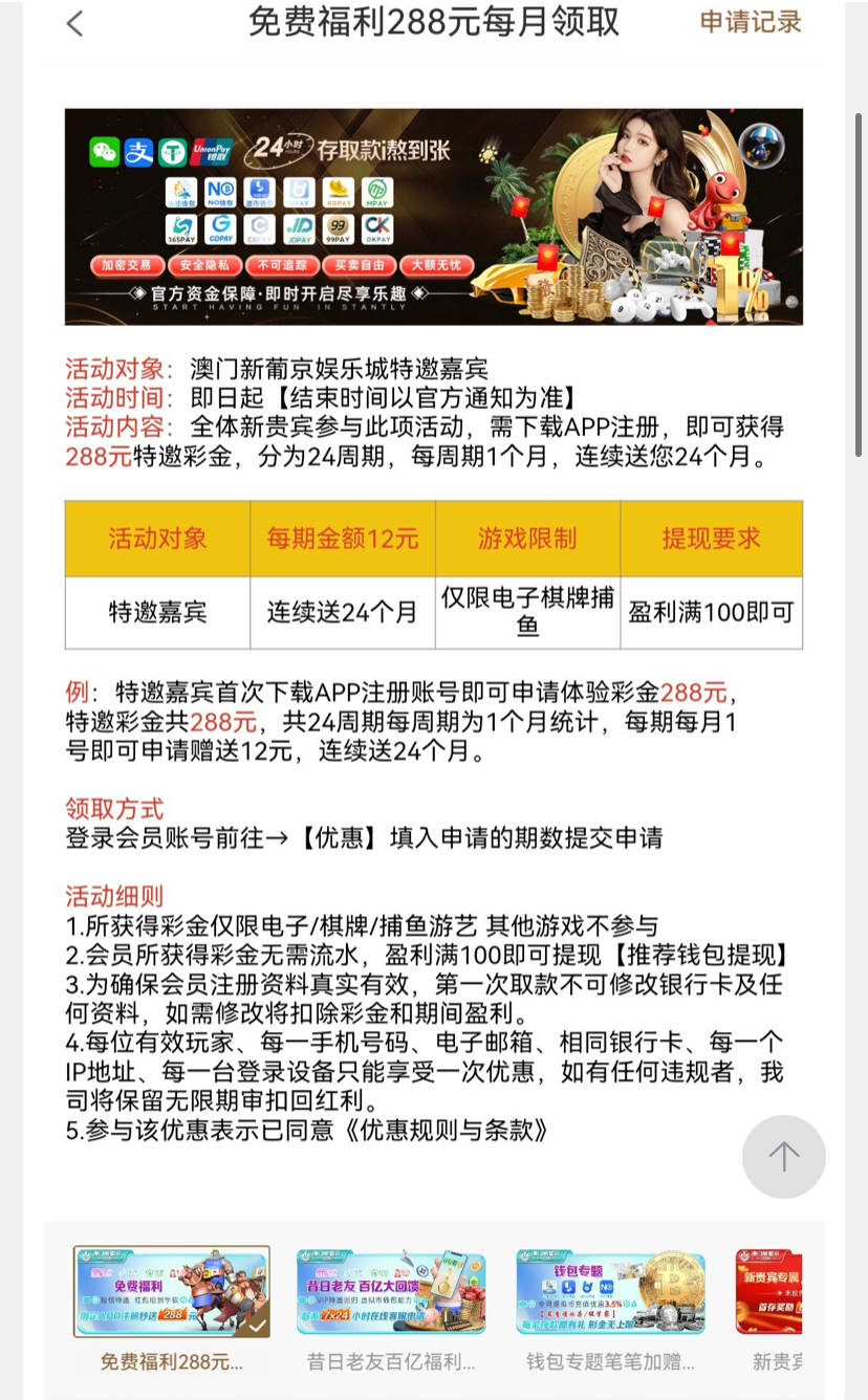 短信特邀288每月领取12我没打出来