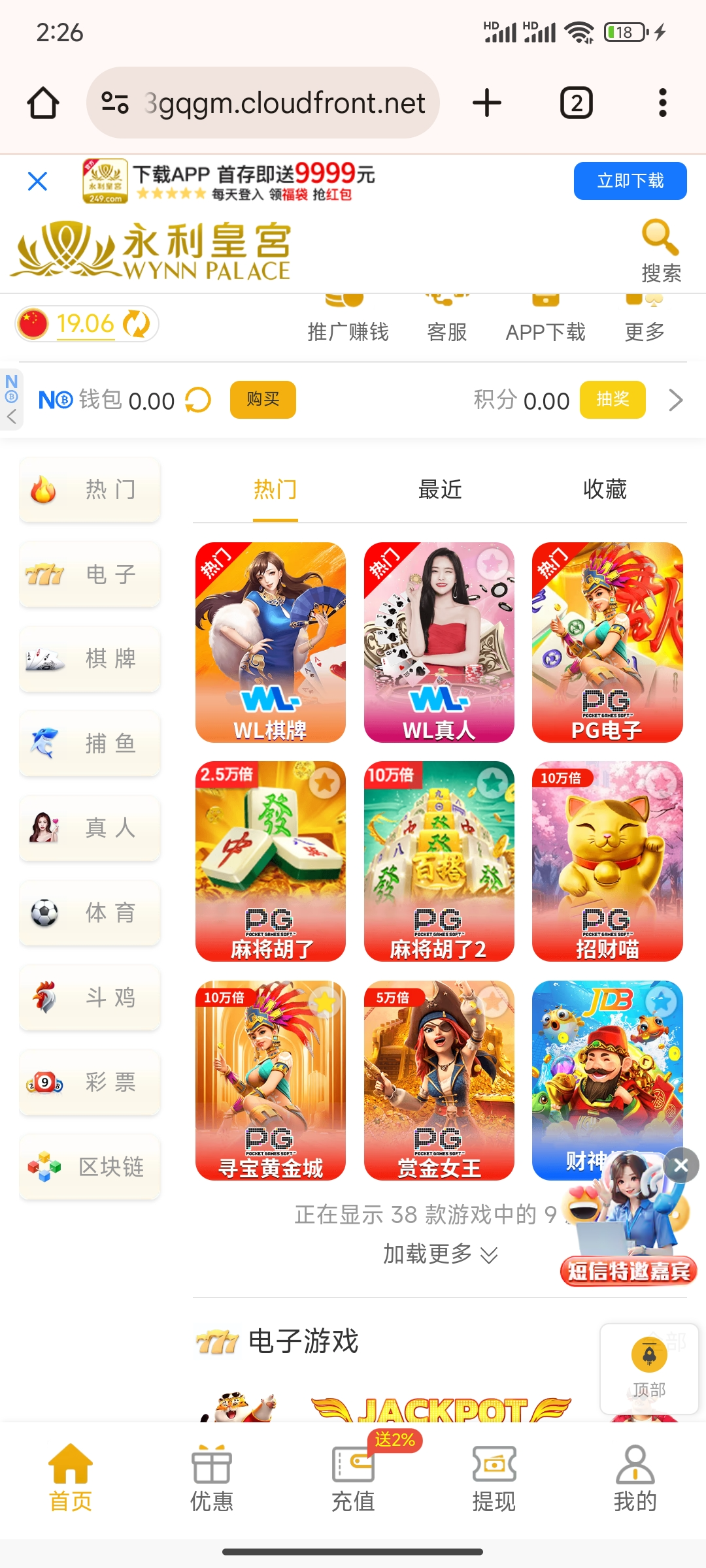 没充值过,刚刚短信特邀领了19