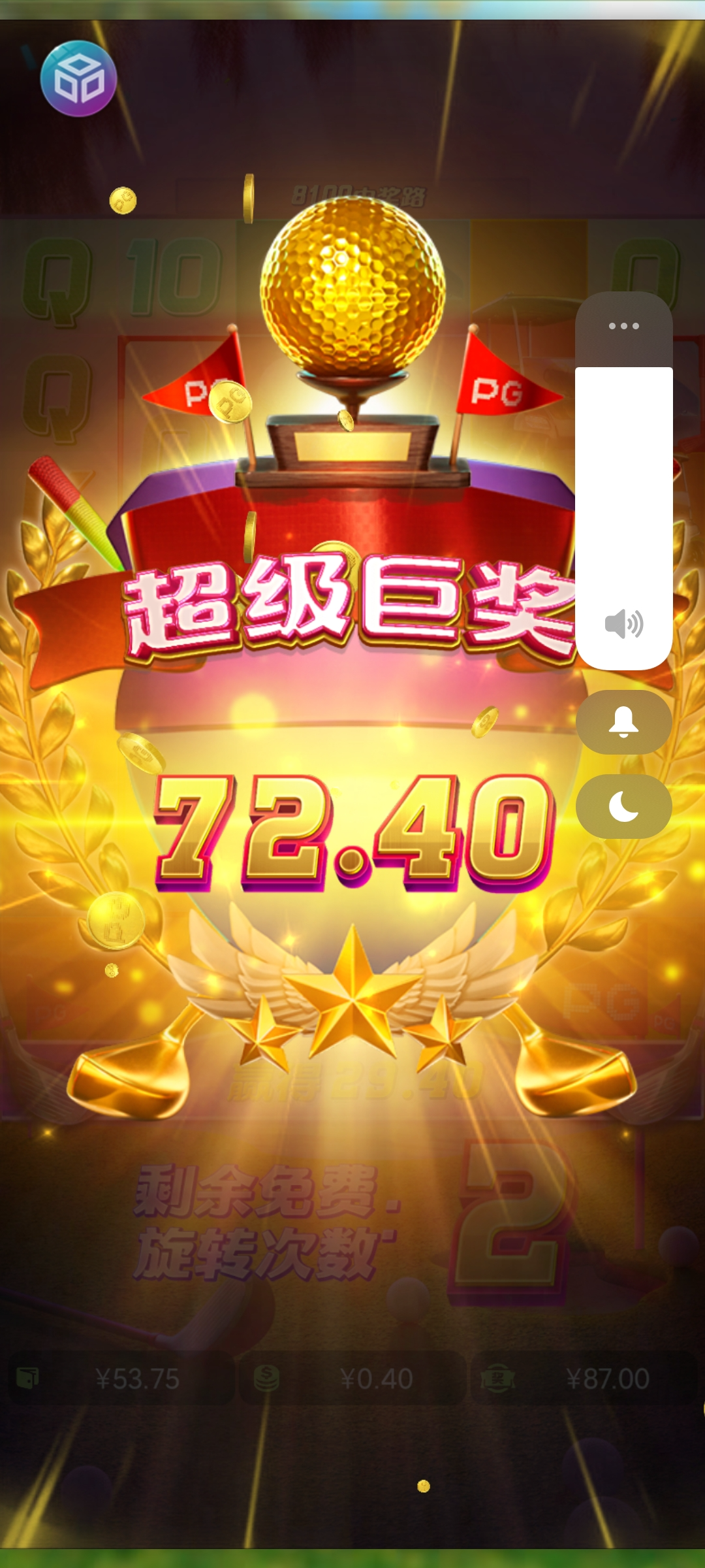 拉麻将剩最后0.2一拉进免费,报个1块多,然后余额剩3一拉爆个72