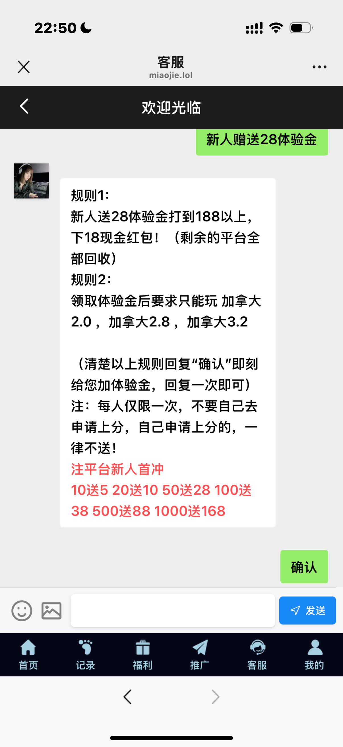 微信扫码登录联系在线客服申请送28,说结束了等人少的时候再去