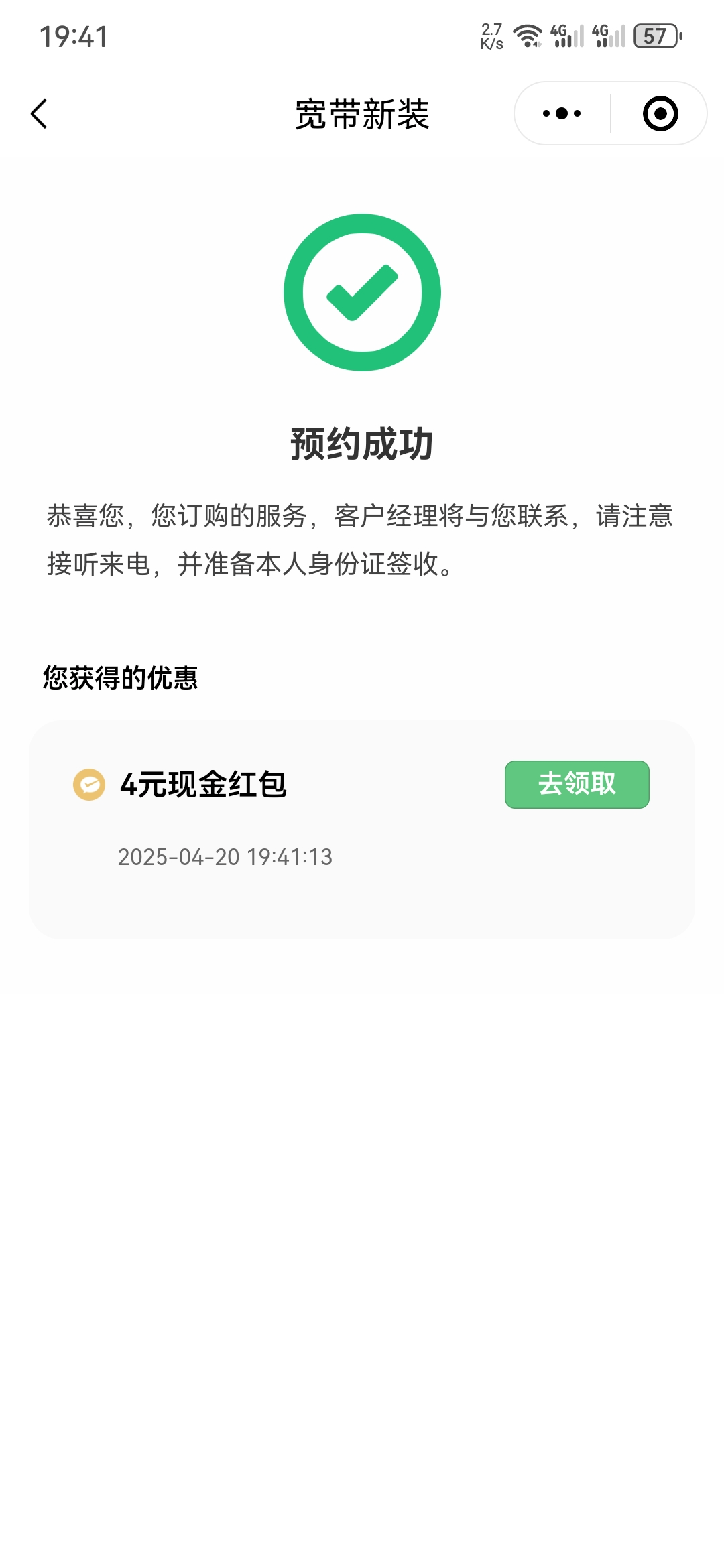 【微信宽带预约】—✅—4块现金