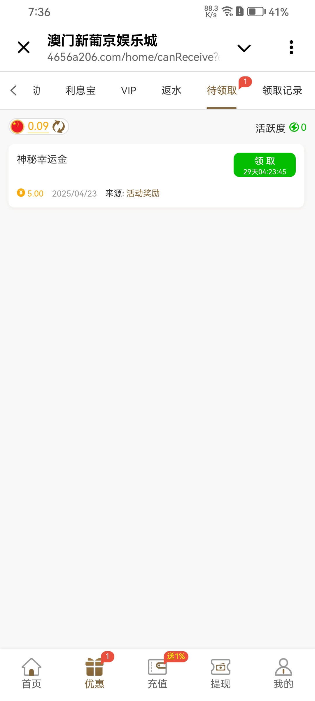 有号可以去看看 又送神秘彩金了