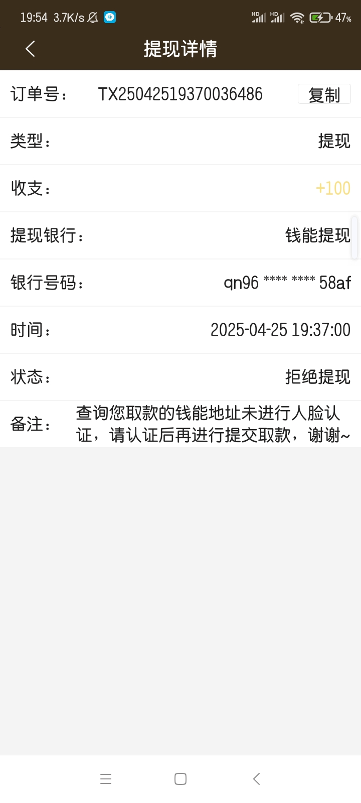 有没有别的钱包?拿别的钱包直接提我之前也是这样,钱能被封了,我直接拿no钱包提的