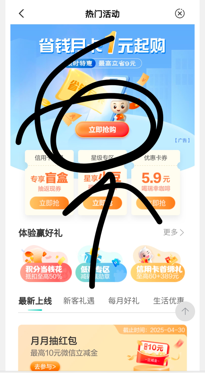 点最上面的省钱月卡