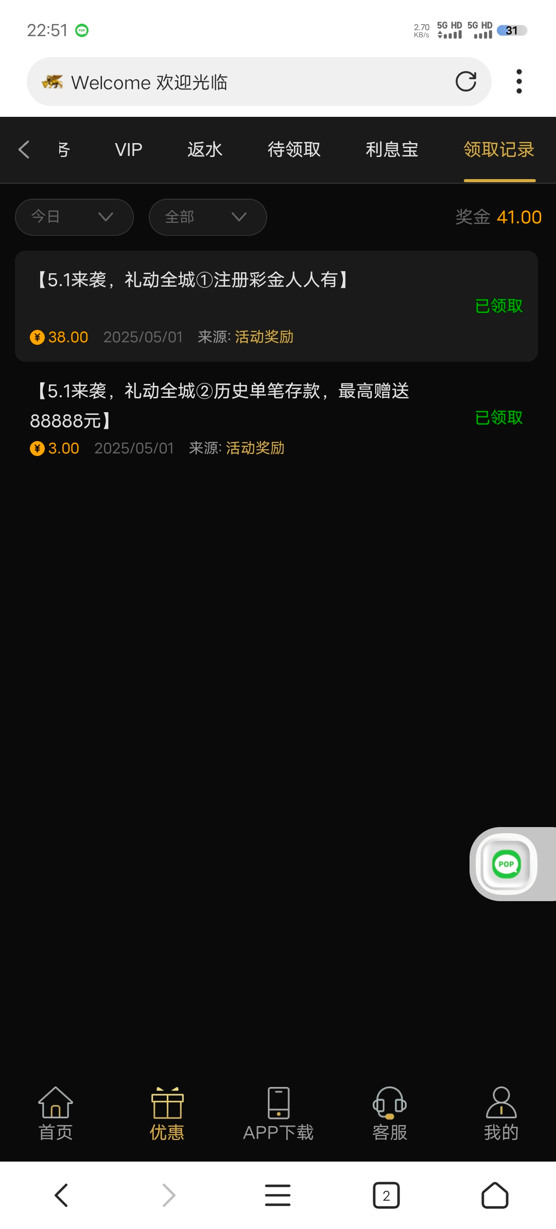 历史充值过500都能领38