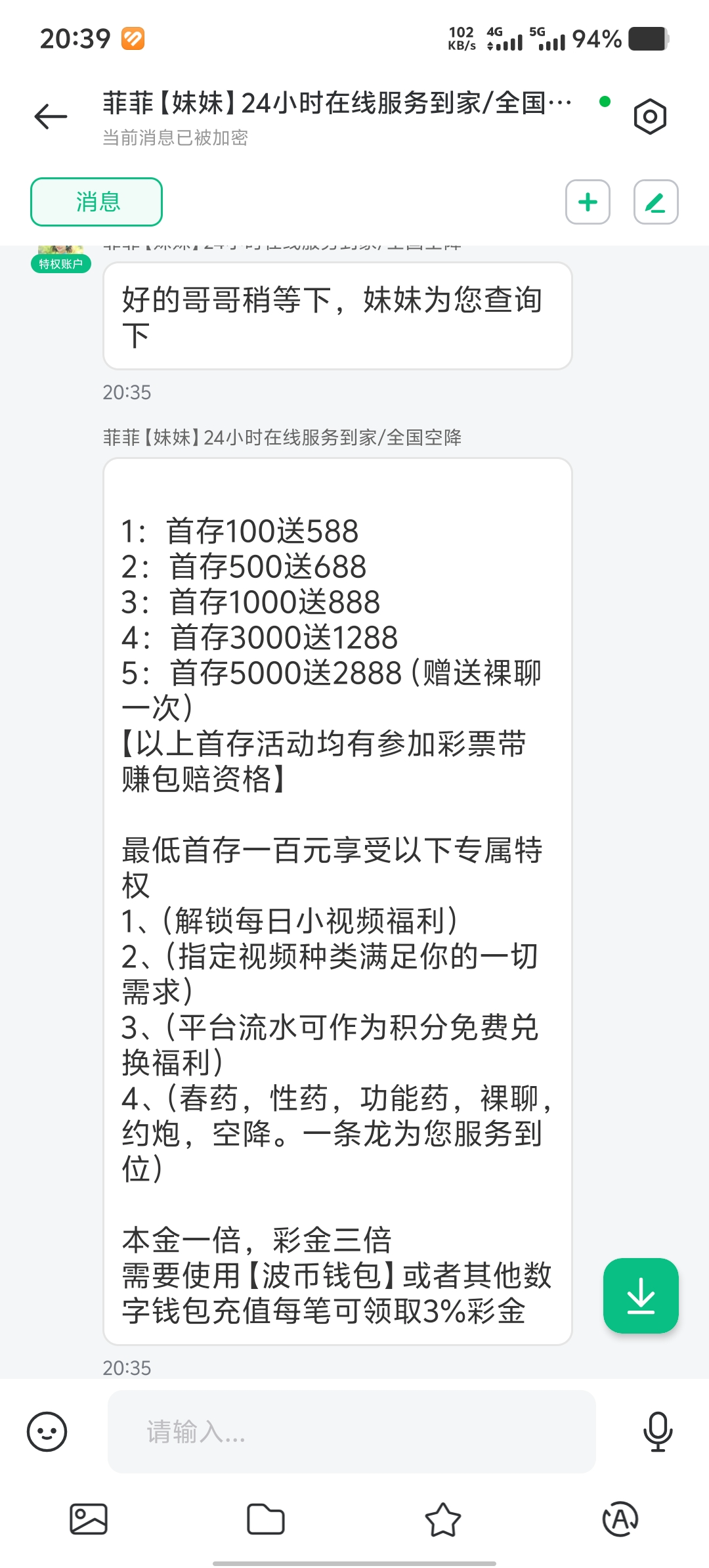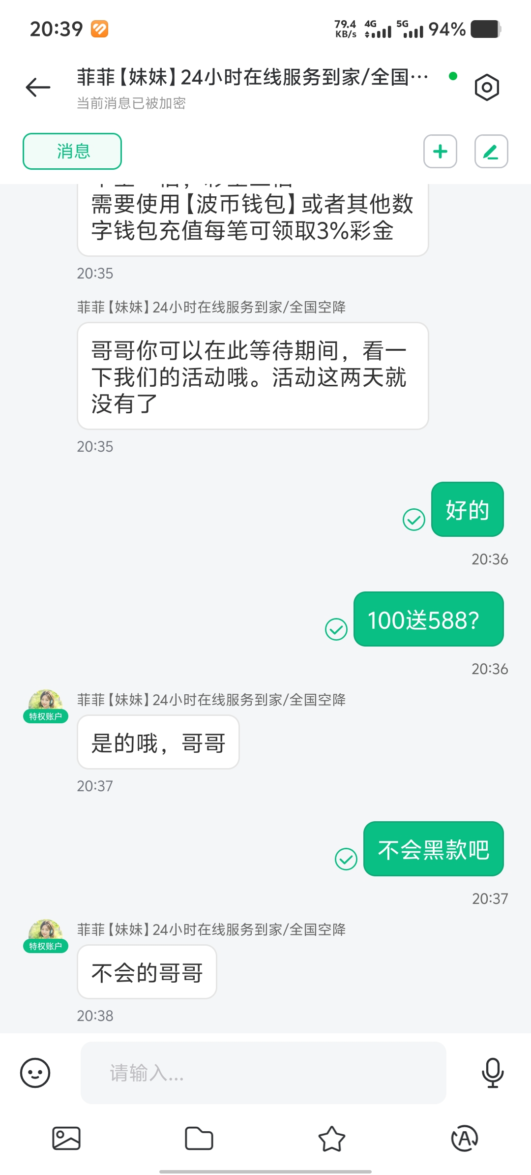 送你,5.88哈哈哈,我上次100+188送我18.8