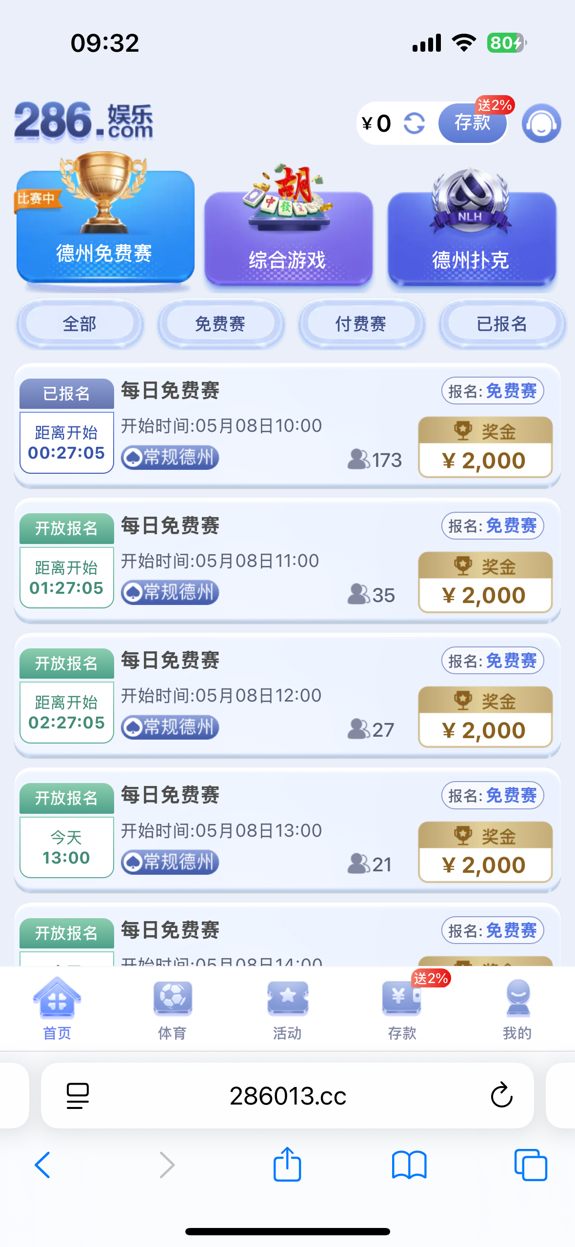 免费德州赛,每场奖金2000元,每个小时都可以参加,白嫖勿充值!