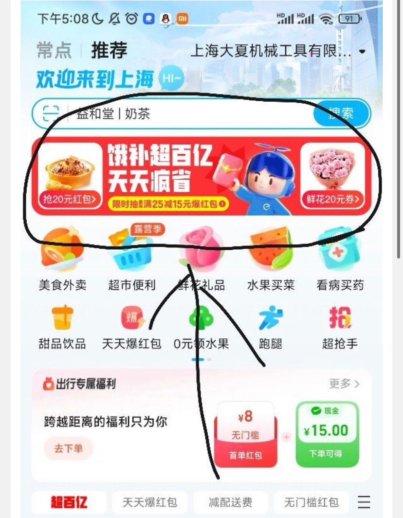 打开饿了吗地址定位上海,首页横幅进去左下角领10卷,点外卖切换回来就可以了,我试了一样能用,觉得麻烦无视就可以