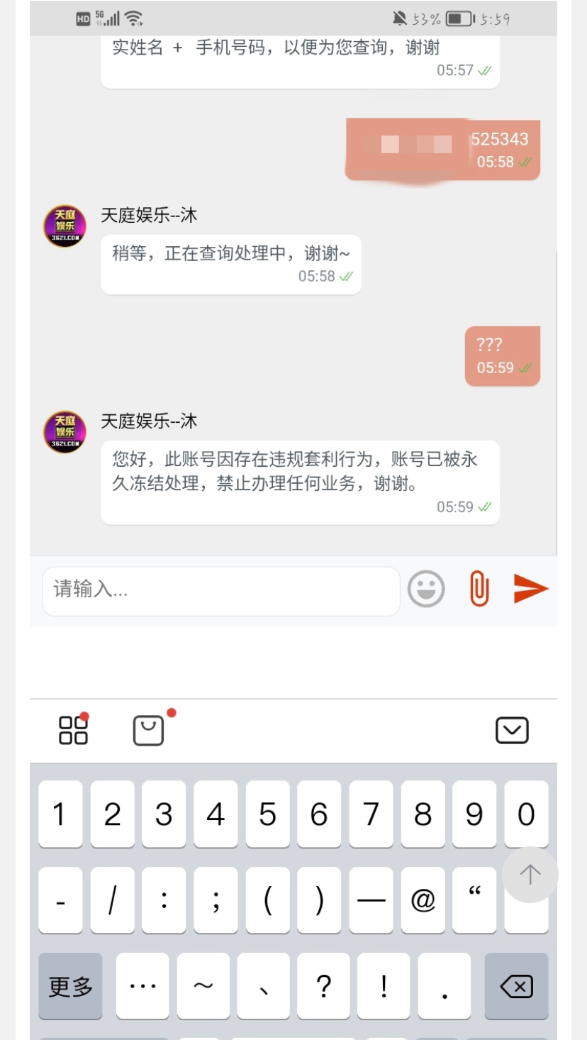 顶级系列,天庭3261,充值1000,玩传奇电子CQ9五福临门JP报了10W,提现一直待审核,客服一直不回复。后面直接给冻结了,6666 牛逼
