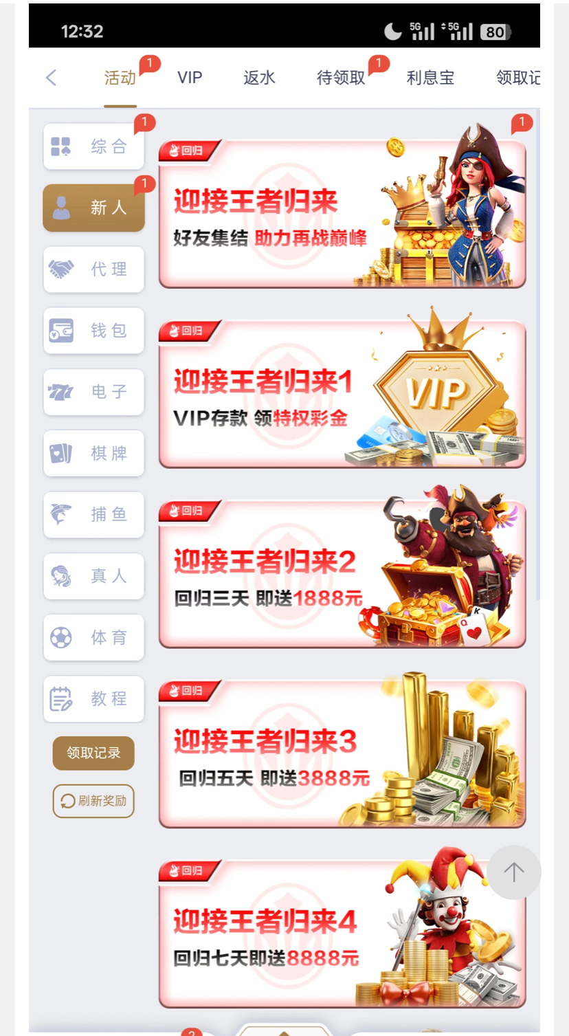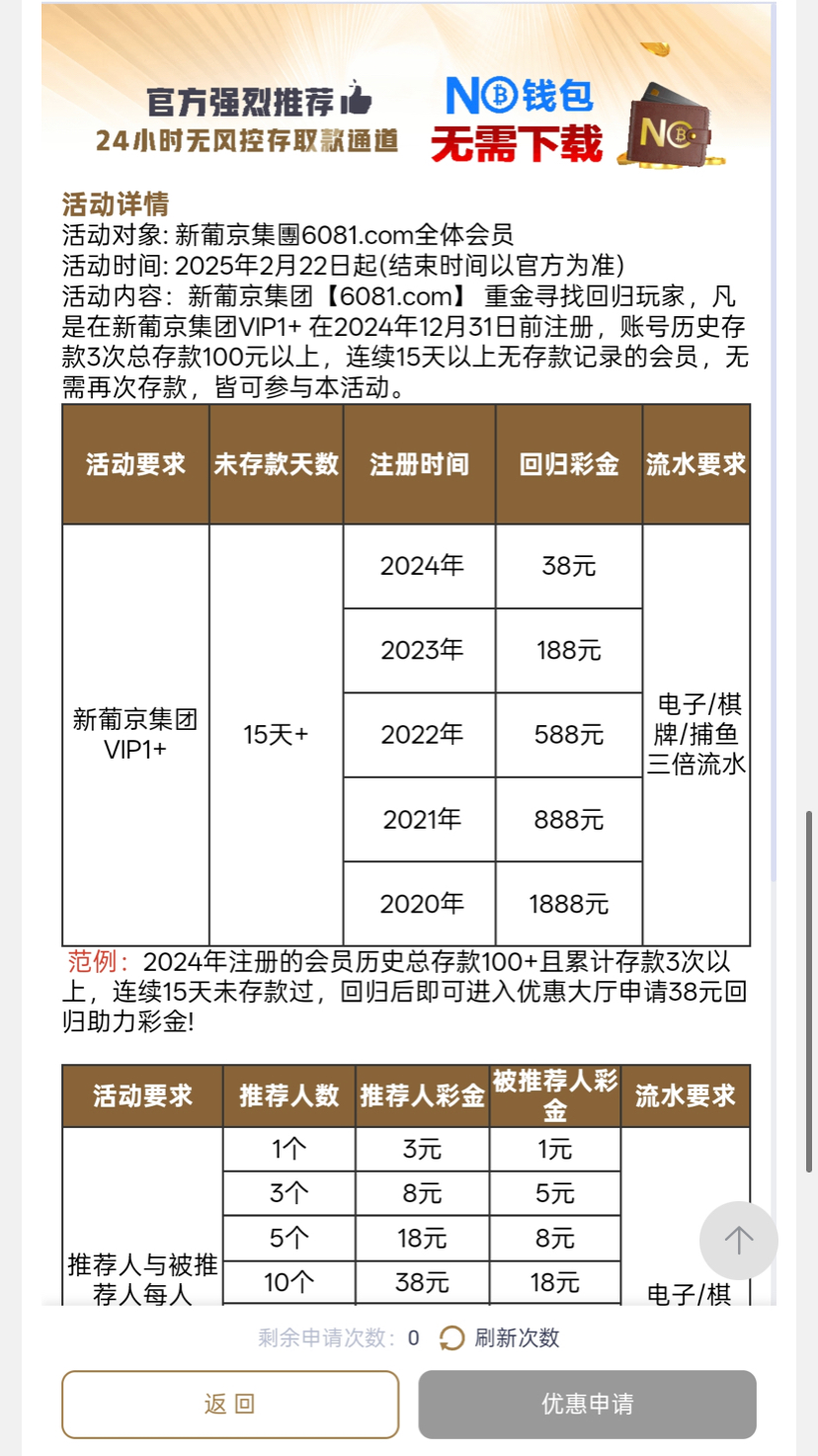 新葡京081 之前玩过的 15天未存过款 第16天去活动迎接王者归来申请回归彩金
