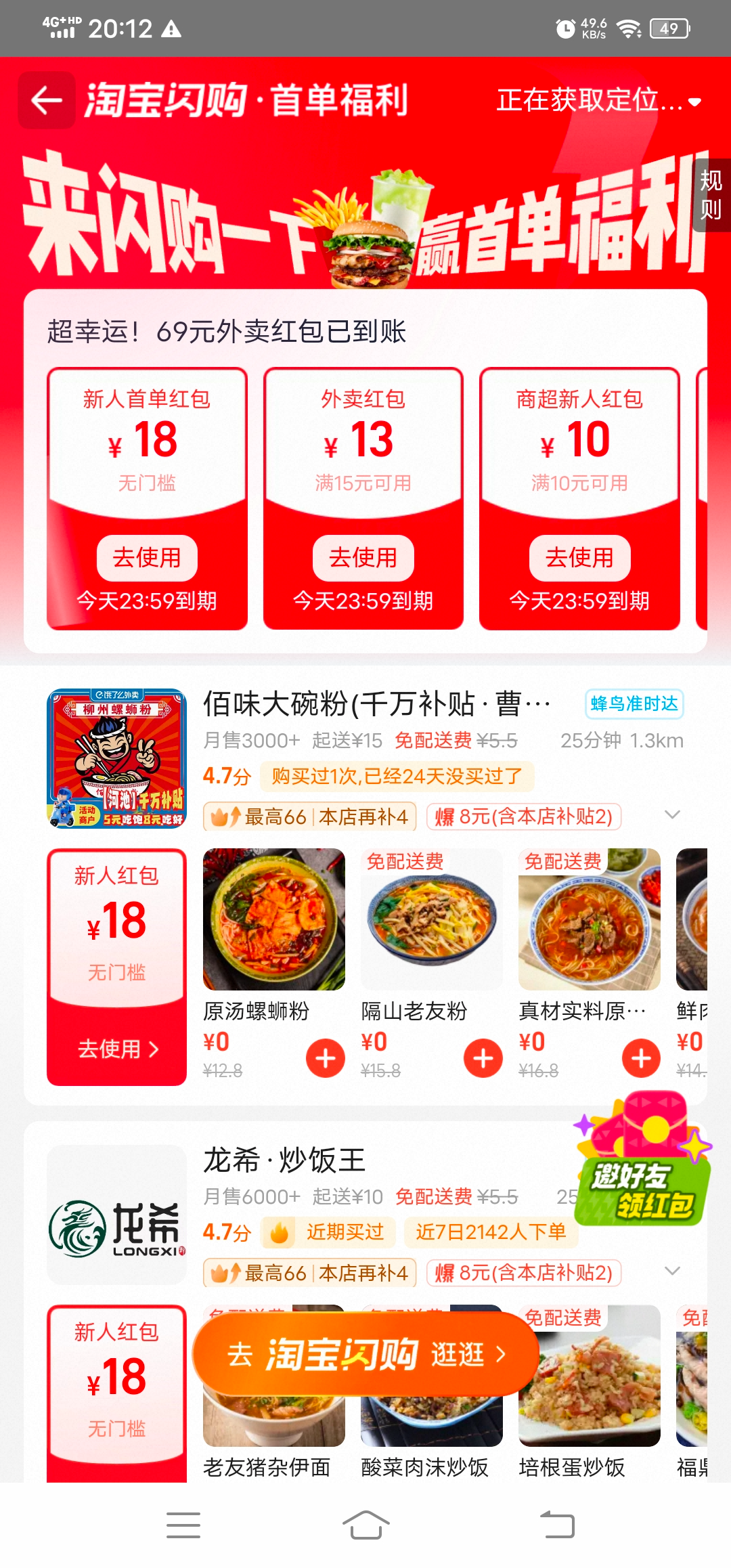 有没有挂壁的老哥,送你一餐18块钱内,我这有个首单免费,我自己不想点,要过期了,就一个,先到先得,12点之前,就一个有个首单免费,