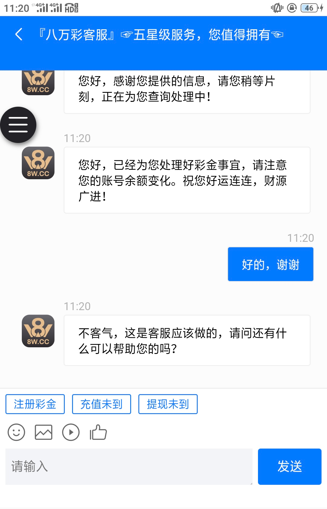 注册以后,联系在线客服,里面有一个注册彩金,下载APP,截图申请。彩票台多IP经典,各位老哥随意 8w.cc