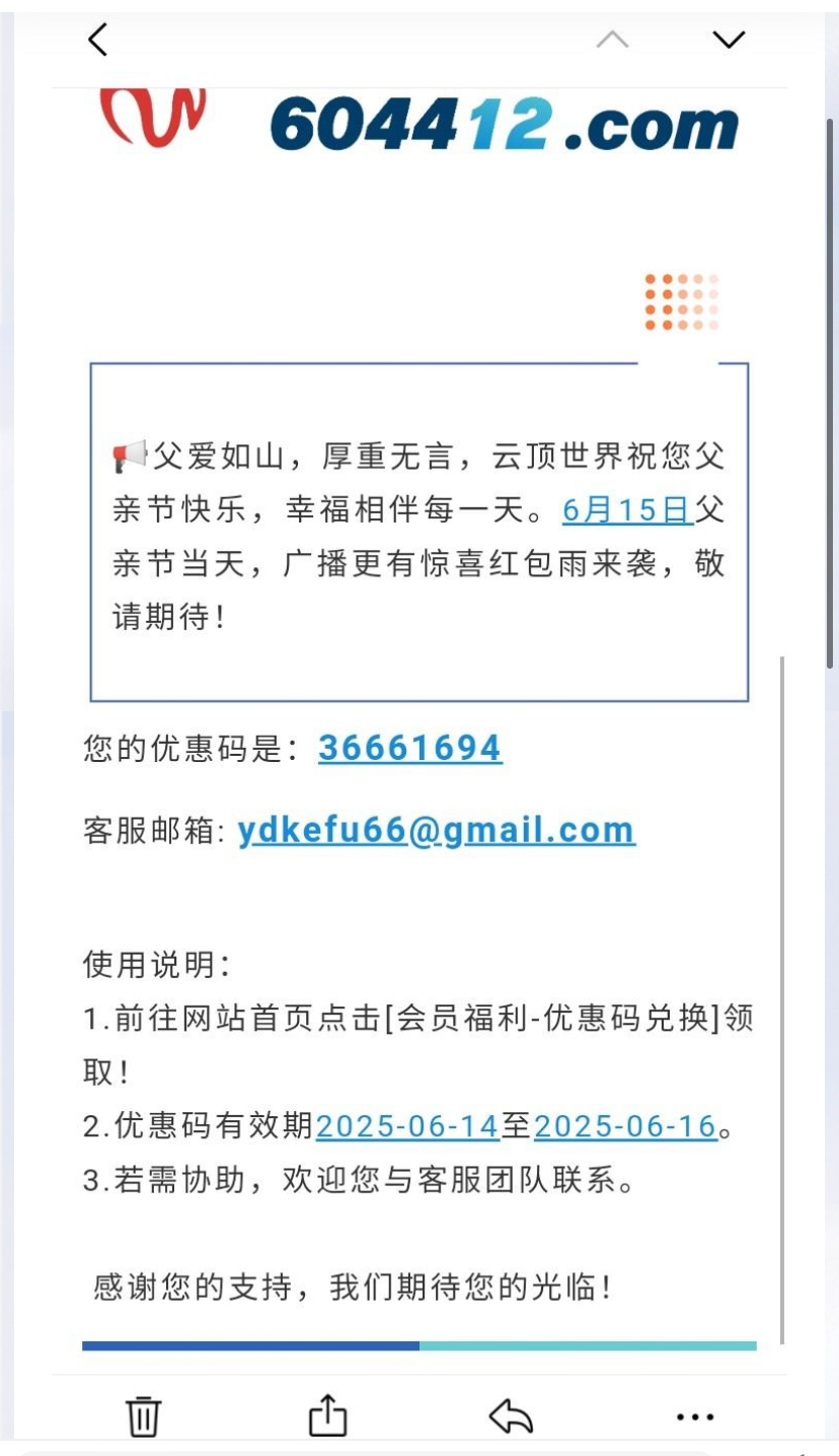 收到云顶父亲节优惠码6.66