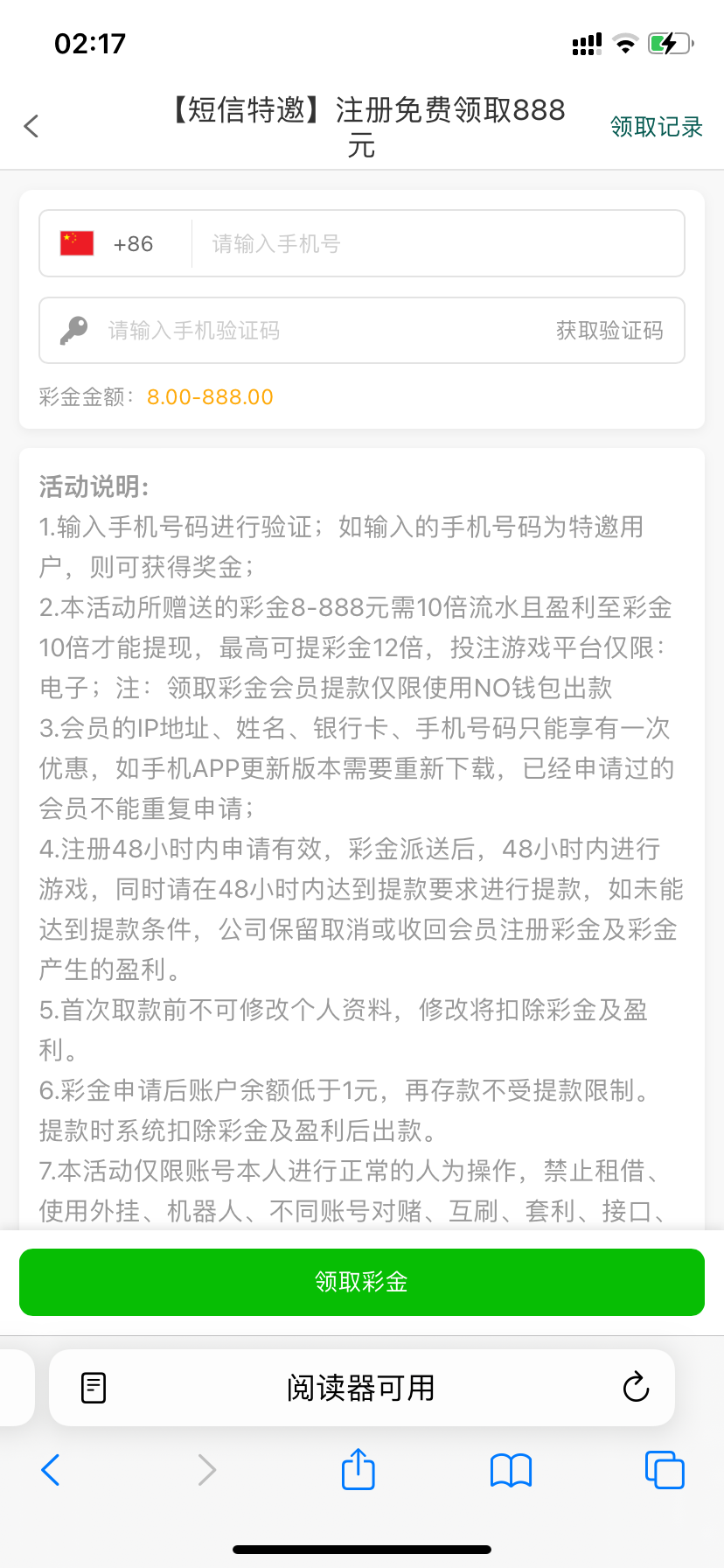 网址: 034.com 然后还有个验证短信彩金自己试试