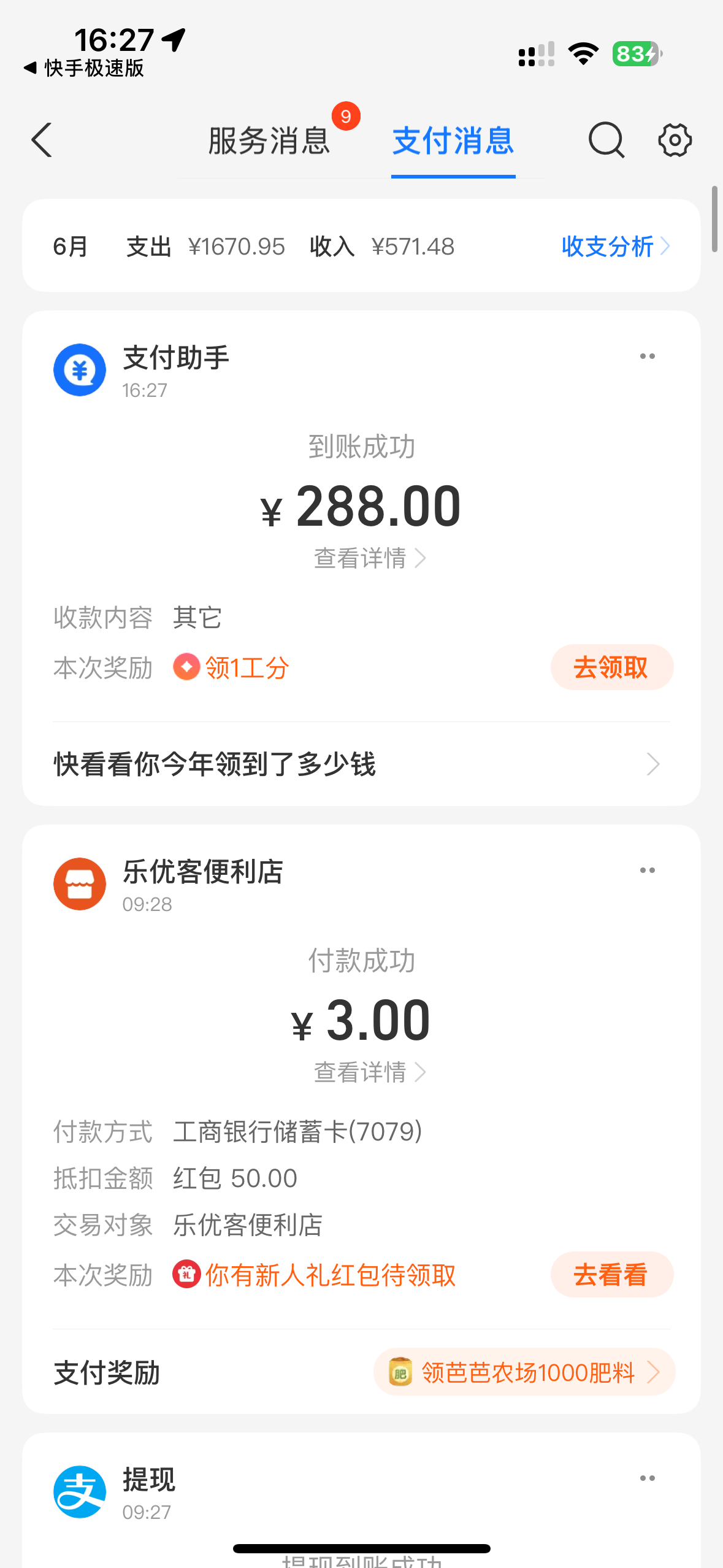 到了只能提288