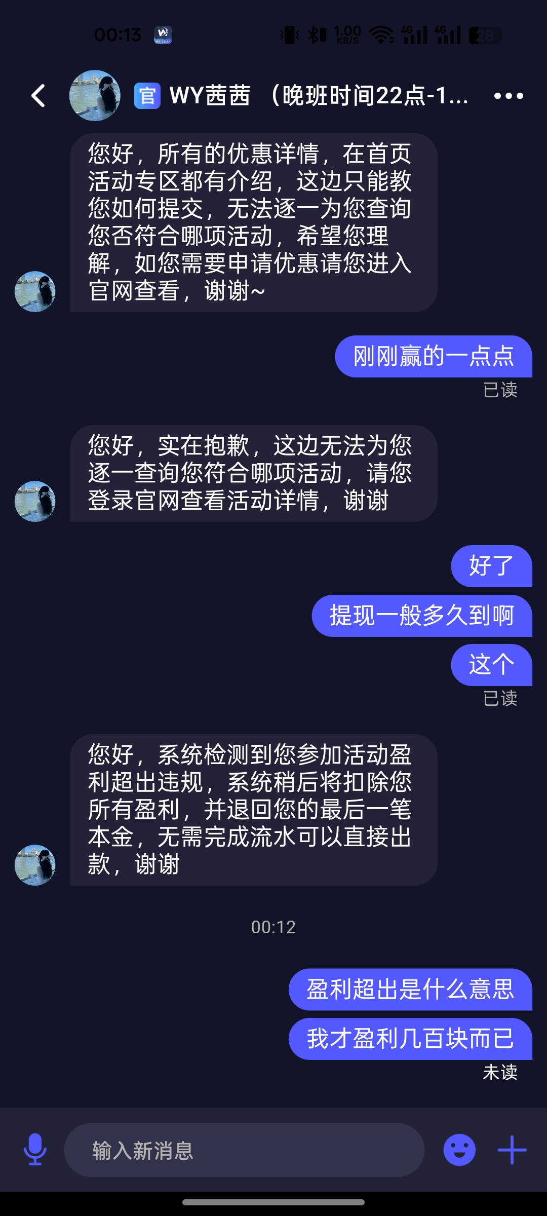 今天收到电话特邀,去参加100+100,打的2000多流水,提现500多都提现不出来,说超出盈利,一点实力都没有这个平台,第一次听说超出盈利